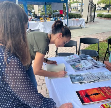 Cuando llegó el momento de exponer mi libro, tuve la oportunidad de estar sentada en la mesa con Luis de la Paz y Ronaldo Morelli, el autor de "Historias que nunca nos contaron", entre otros tantos libros. Una narración increíblemente conmovedora de la realidad cubana hacia 1980 cuando tuvo lugar el éxodo del Mariel. Este espacio fue más que interesante, convirtiéndose en un punto de encuentro donde las voces de Cuba y otros lugares se fusionaron en un diálogo enriquecedor y lleno de magia.